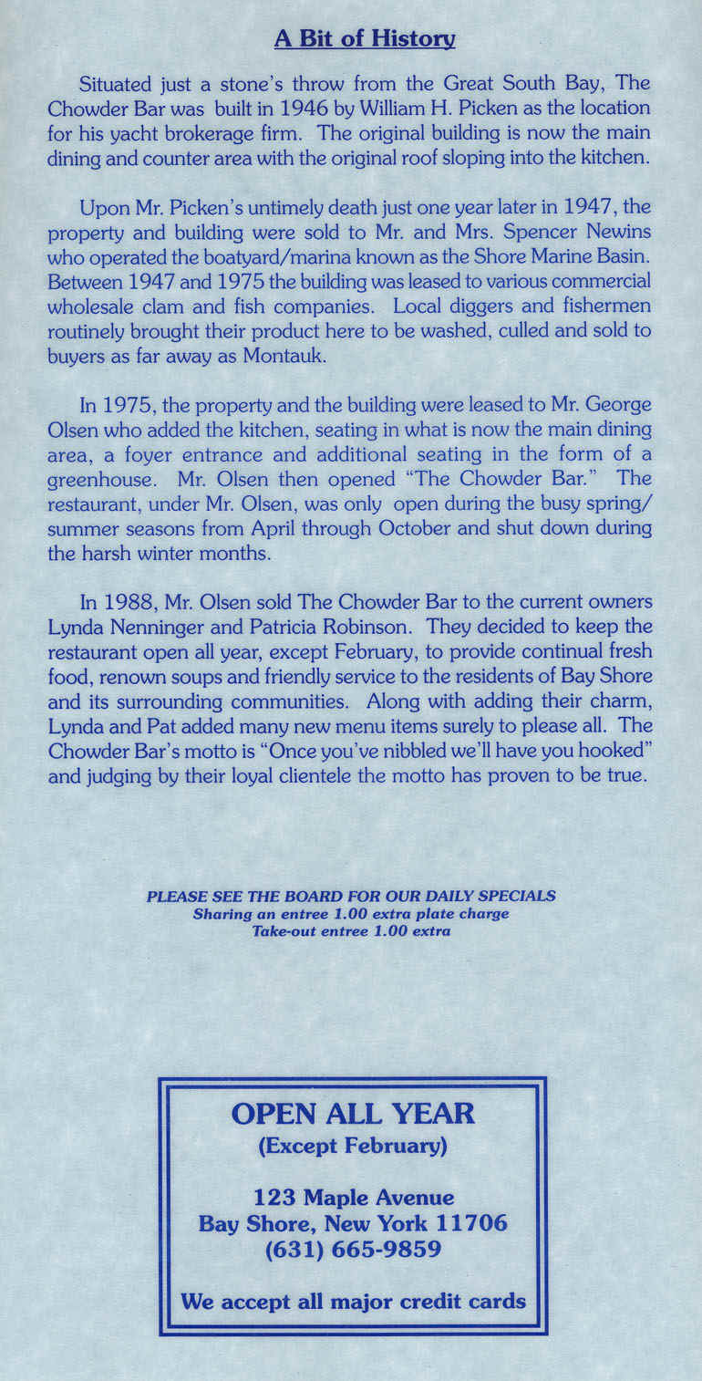 <%@ Language=VBScript %> www.thechowderbar.com, Chowder Bar, Bay Shore